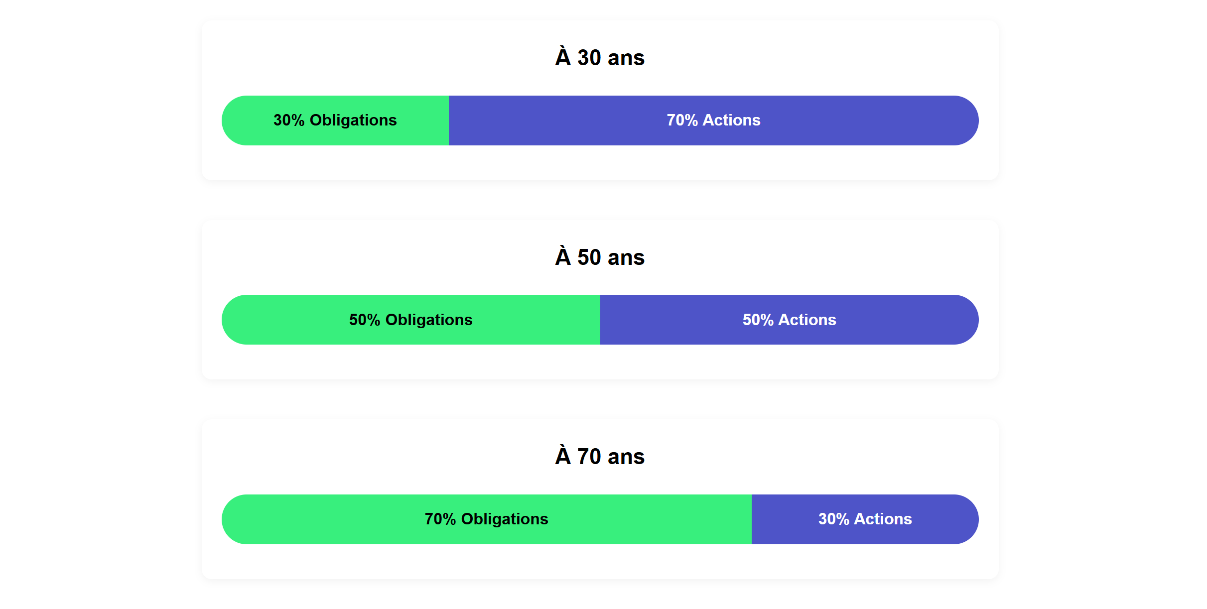 À 70 ans : 30% en actions, 70% en obligations