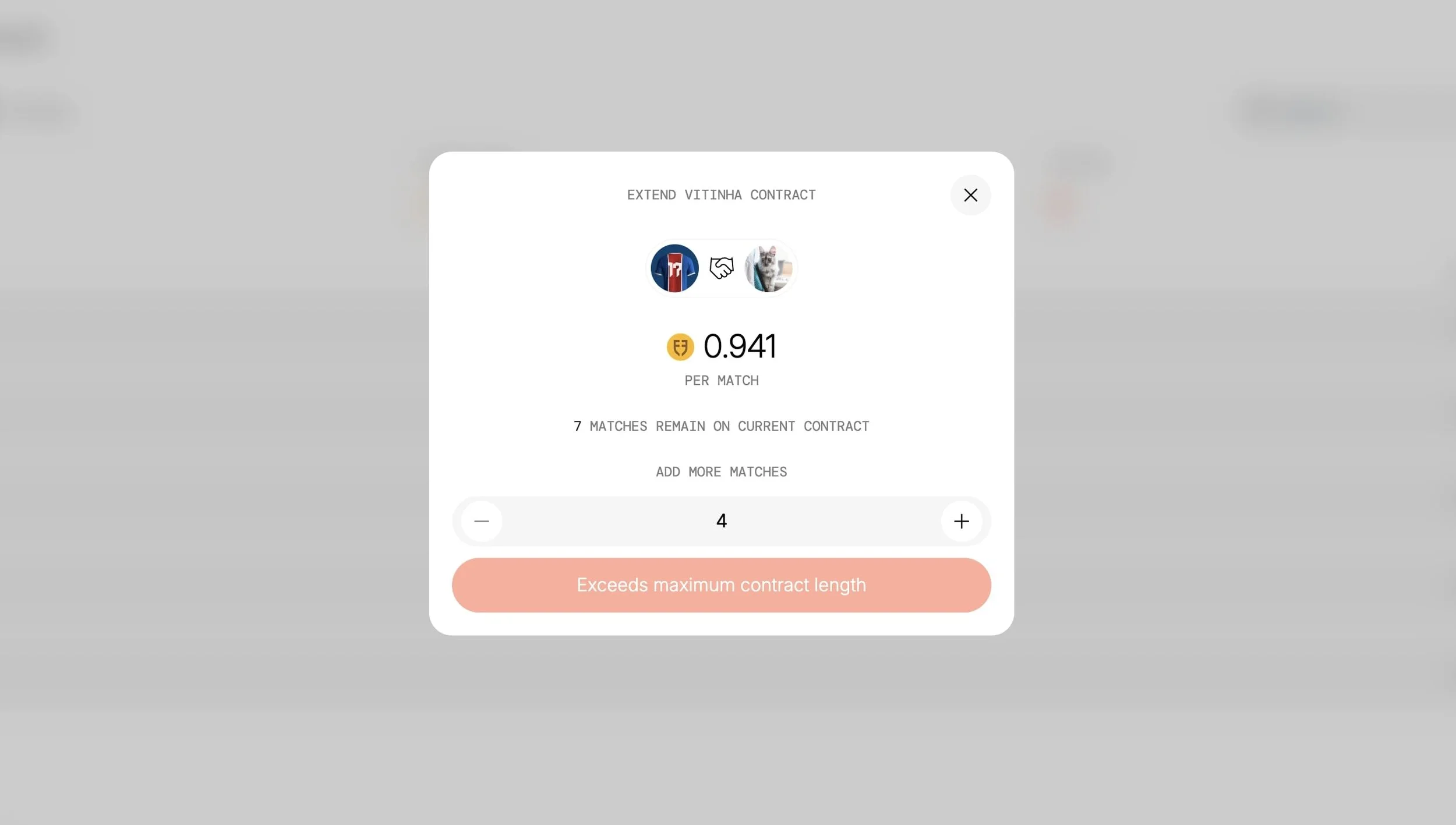 Chaque joueur dispose de 4 contrats d'utilisation. Un contrat se consomme uniquement quand le joueur participe à un vrai match.